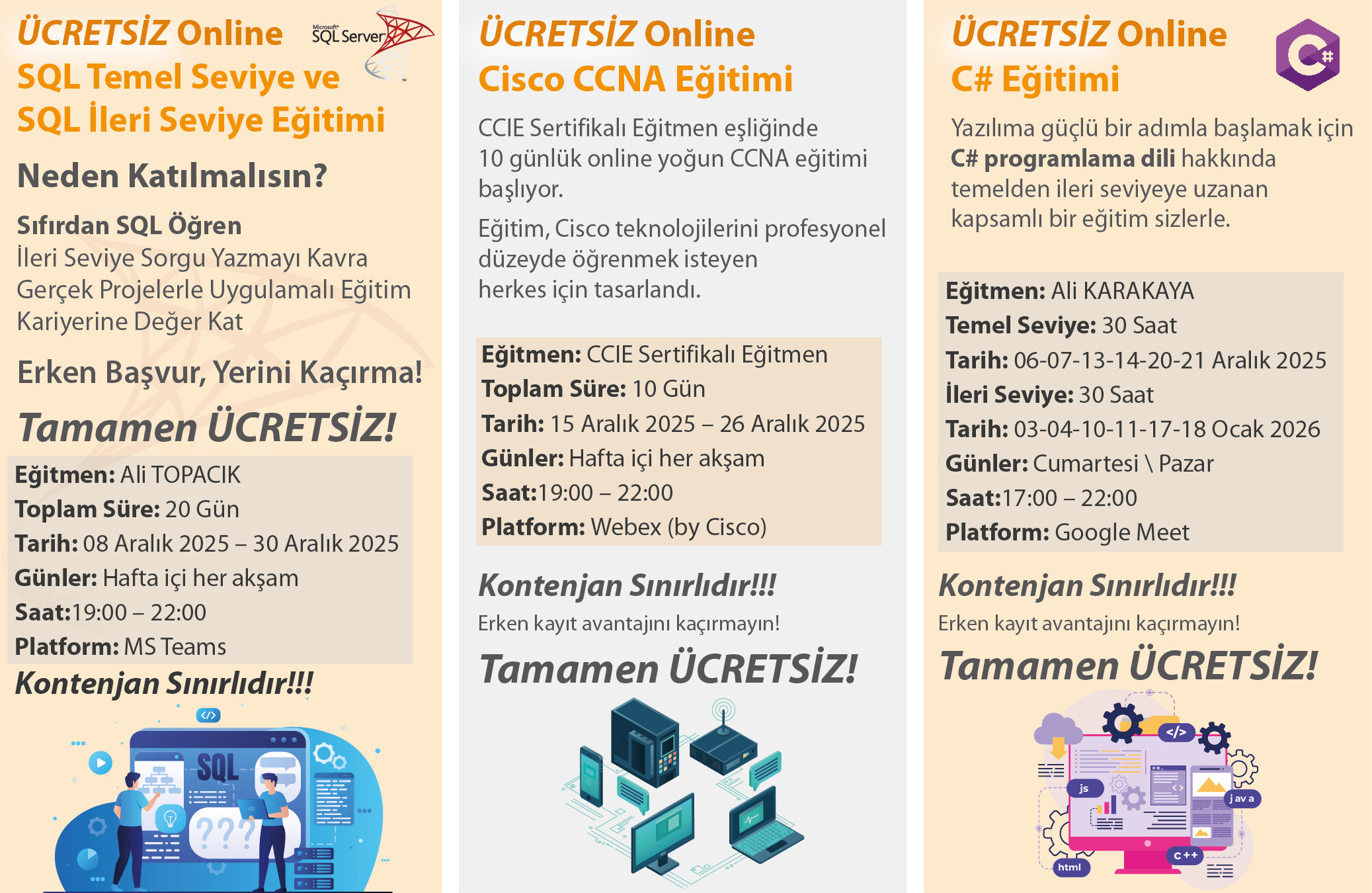 Teknoloji dünyasındaki hızlı değişimlere ayak uydurmanızı sağlayacak, güncel ve kapsamlı bilişim eğitimleriyle yeteneklerinizi geliştirmenize ve verimliliğinizi artırmanıza yardımcı oluyoruz.